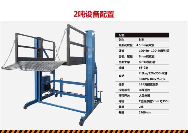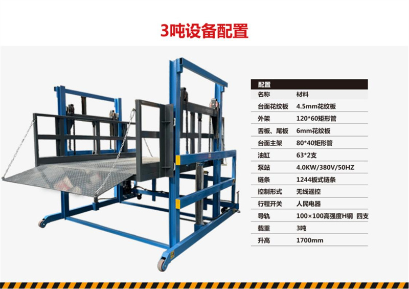 3.卸貨平臺(tái)機(jī)架后部設(shè)有可調(diào)節(jié)鏢絲桿支撐地面,用于裝卸貨作業(yè)時(shí)起到整體固定作用